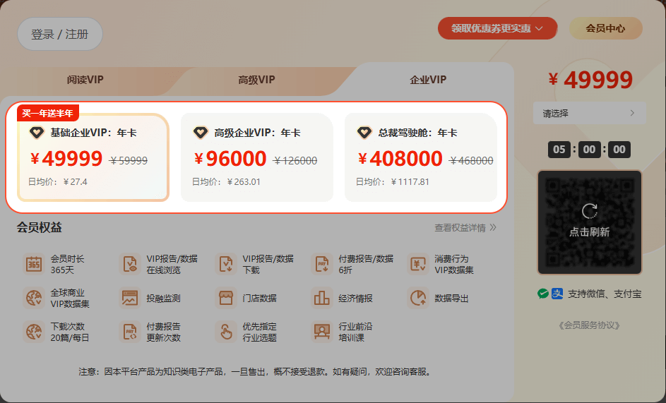购买企业VIP年卡会员的用户获得一张5000元京东E卡实物卡。